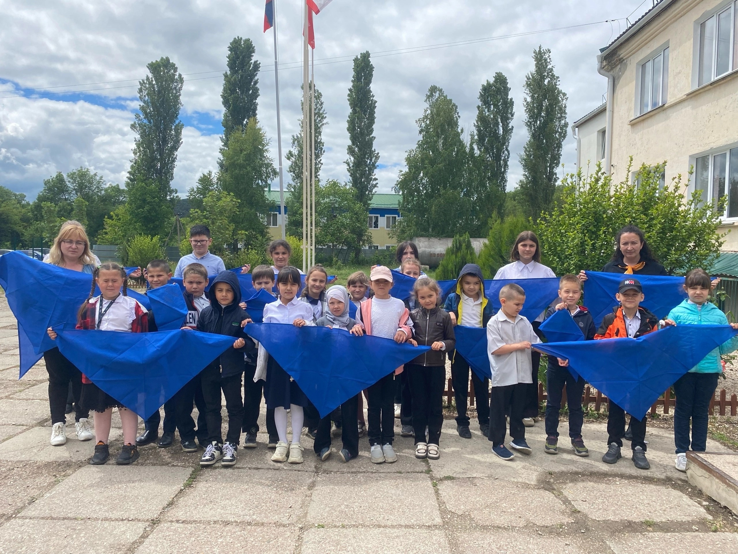 В Денисовской школе советник директора по воспитанию, Маркушина Луиза, совместно с учителем начальных классов, Пересичан Евгенией Александровной, и учителем технологии, Губский Натальей Ивановной, приняли участие в региональной акции " Синий платочек"
