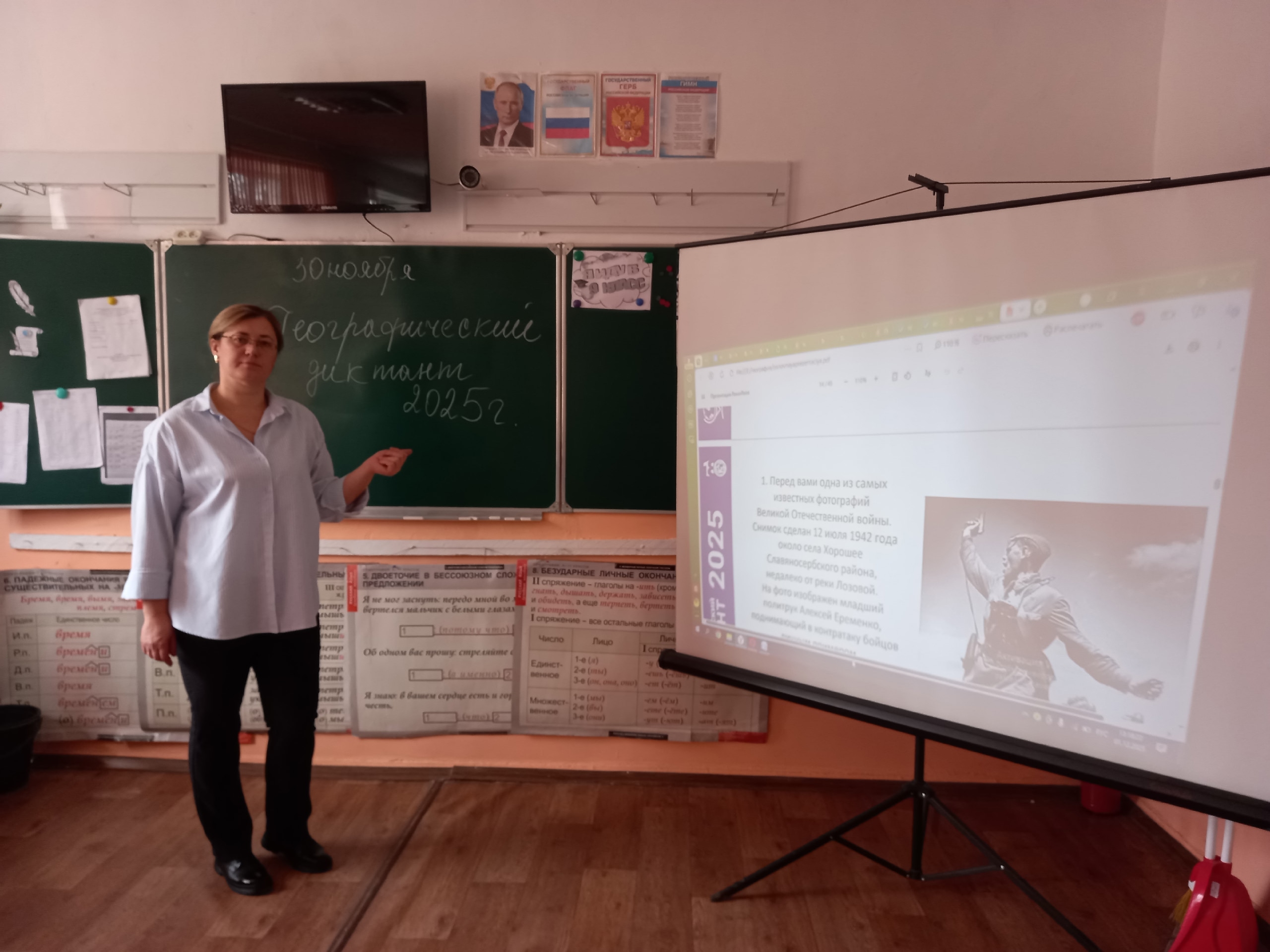 Организатором площадки в нашей школе был учитель географии Мишелёва Татьяна Ивановна, которая всячески содействовала, проведению данного мероприятия. Также она пожелала участникам не только показать высокие результаты, но и открыть для себя новые интересные факты о необъятных просторах нашей Родины.