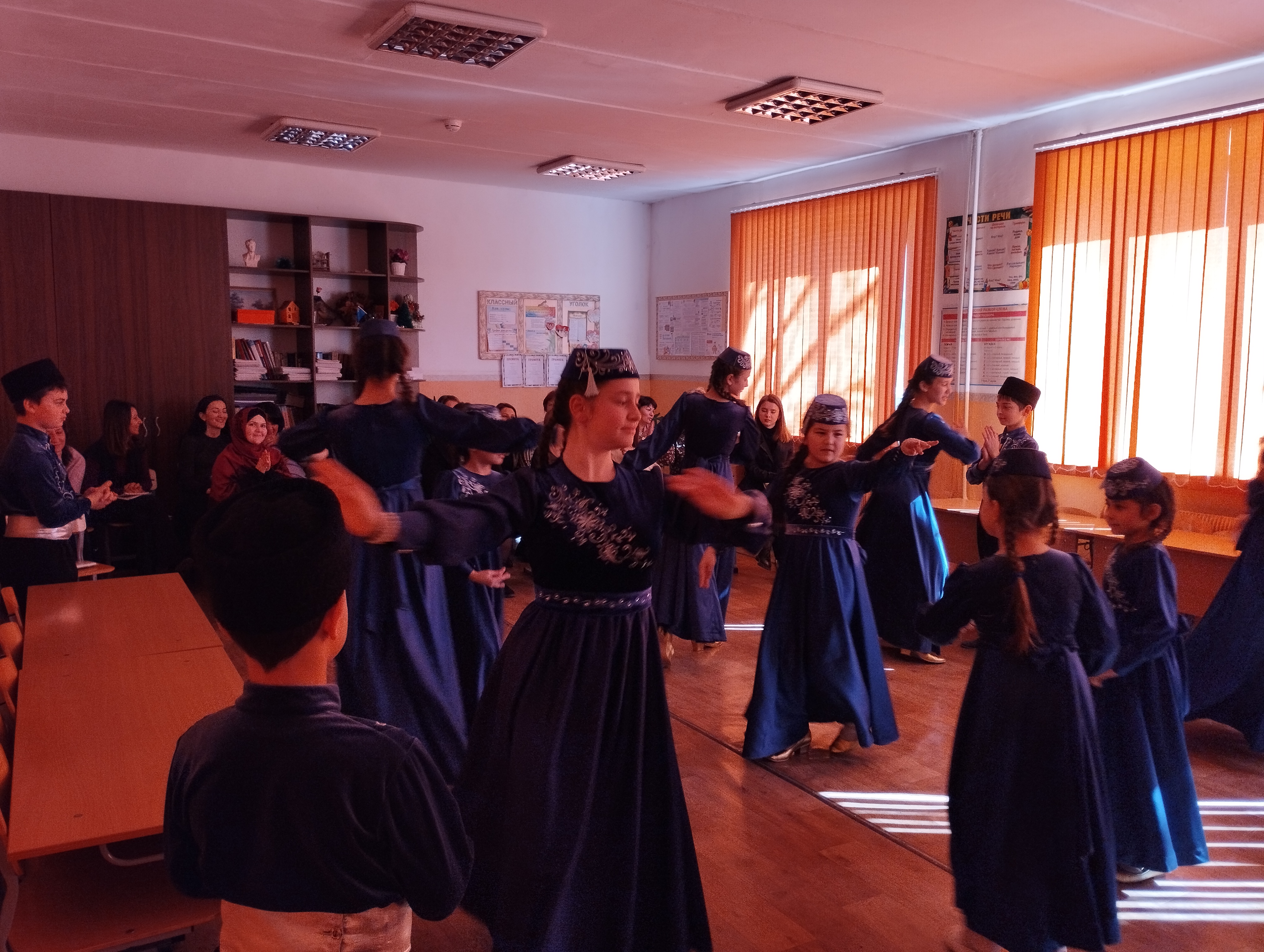 Учащиеся школы под руководством учителя музыки Мустафаевой А.А. приветствовали гостей яркой визиткой. Учителя, преподающие родной (крымскотатарский) язык, на высоком методическом уровне транслировали свой педагогический опыт коллегам: Эмирова Ф.И. показала урок родной (крымскотатарской) литературы, Зиядинова З.И. провела мастер-класс по теме «Игровые технологии при обучении родному языку», Ибрагимова З.Ф. – практикум «Диалектные слова крымскотатарского языка». Общее руководство подготовкой мероприятия осуществлено заместителем директора по УВР Аблаевой Э.С.
