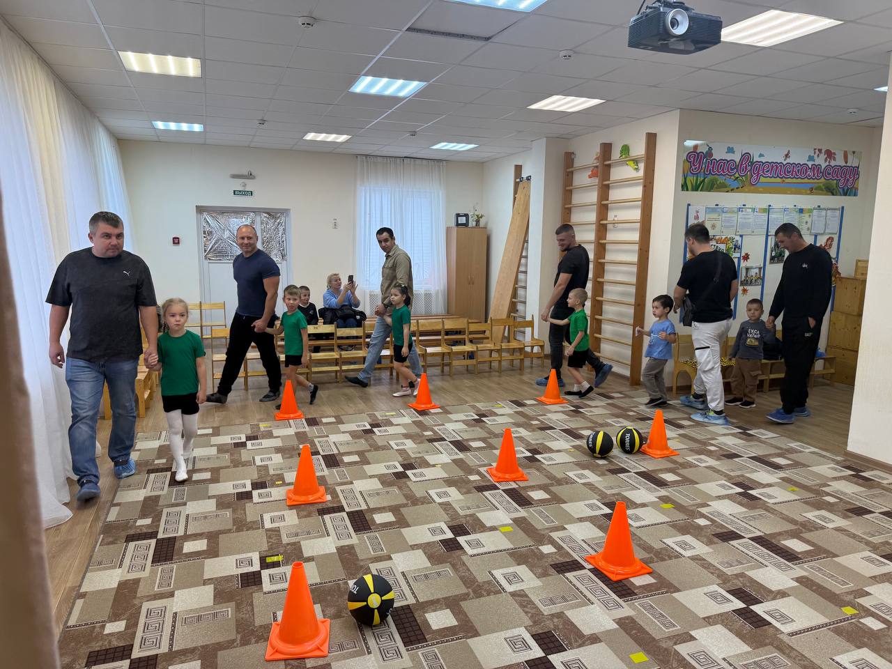 В детском саду состоялось спортивное мероприятие приуроченное ко Дню отца. Воспитанники вместе со своими папами приняли участие в весёлых соревнованиях, где смогли проявить быстроту, ловкость и сплочённость. Атмосфера была по-настоящему праздничной и дружеской! Каждый получил заряд бодрости, отличное настроение и заслуженные призы. Победила дружба!