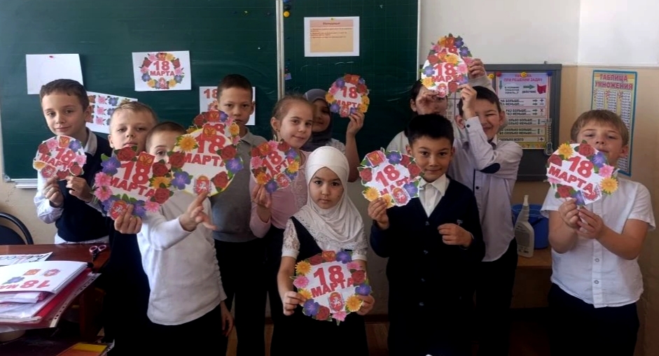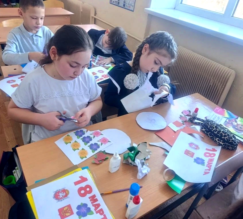 В преддверии праздника, по инициативе советника директора по воспитанию в 🏫 состоялись мастер-классы по созданию открытки «Крымская весна».🇷🇺