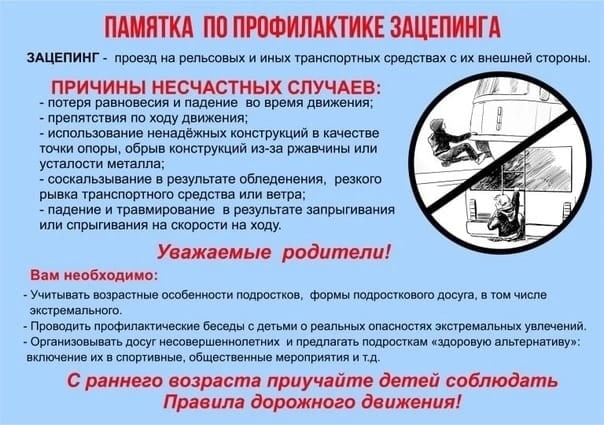 Уважаемые родители! Предлагаем Вашему вниманию памятки по профилактике зацепинга и руфрайдинга среди несовершеннолетних.